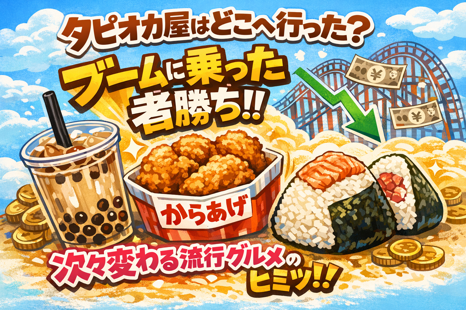 でも実は、“消えた”というより 看板を変えて次のブームに乗り換えた店が多い、という見方があります。タピオカ→唐揚げ→マリトッツォ→焼き芋…みたいに。