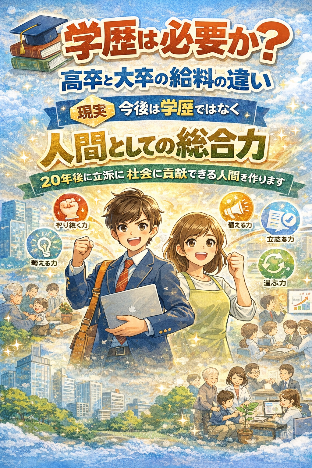 今日は、まずデータで「高卒と大卒の給料の違い」を確認したうえで、これからの時代に本当に強い“人間としての総合力”とは何か、そしてライフカラーが20年後に社会に貢献できる人を育てたい理由をまとめます。