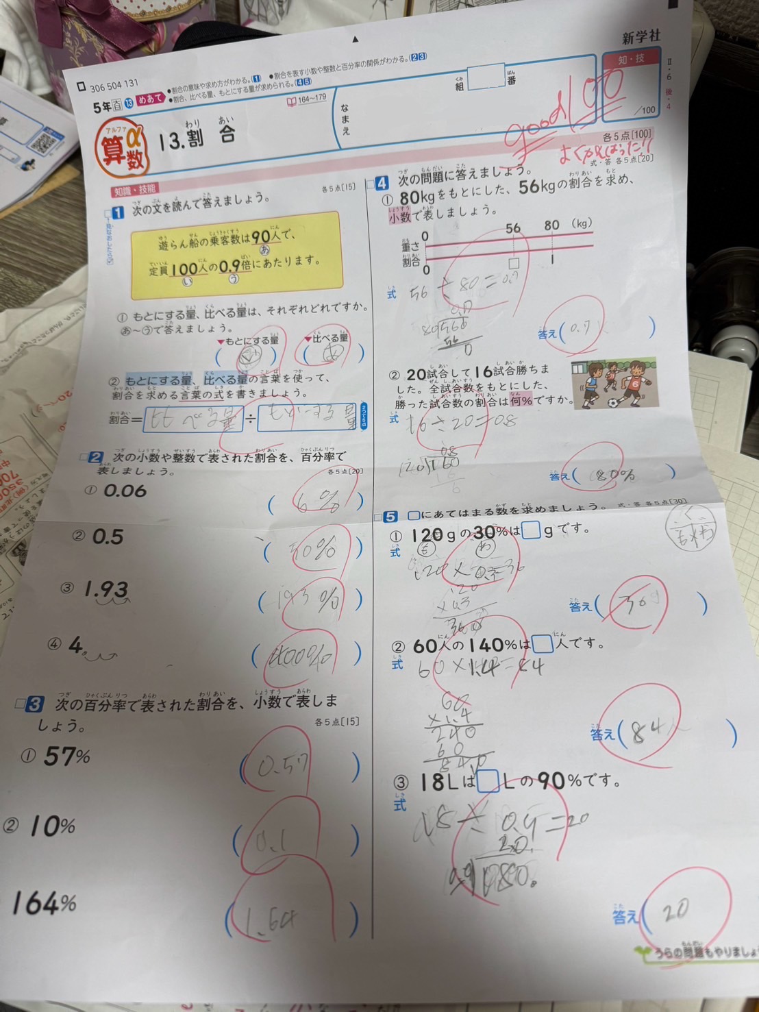 小学5年生の割合(百分率・%・小数)の単元は
