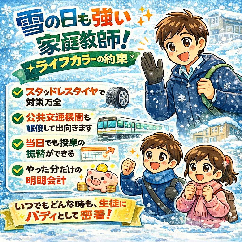 でも、ライフカラーの家庭教師は、雪の日にも強い。