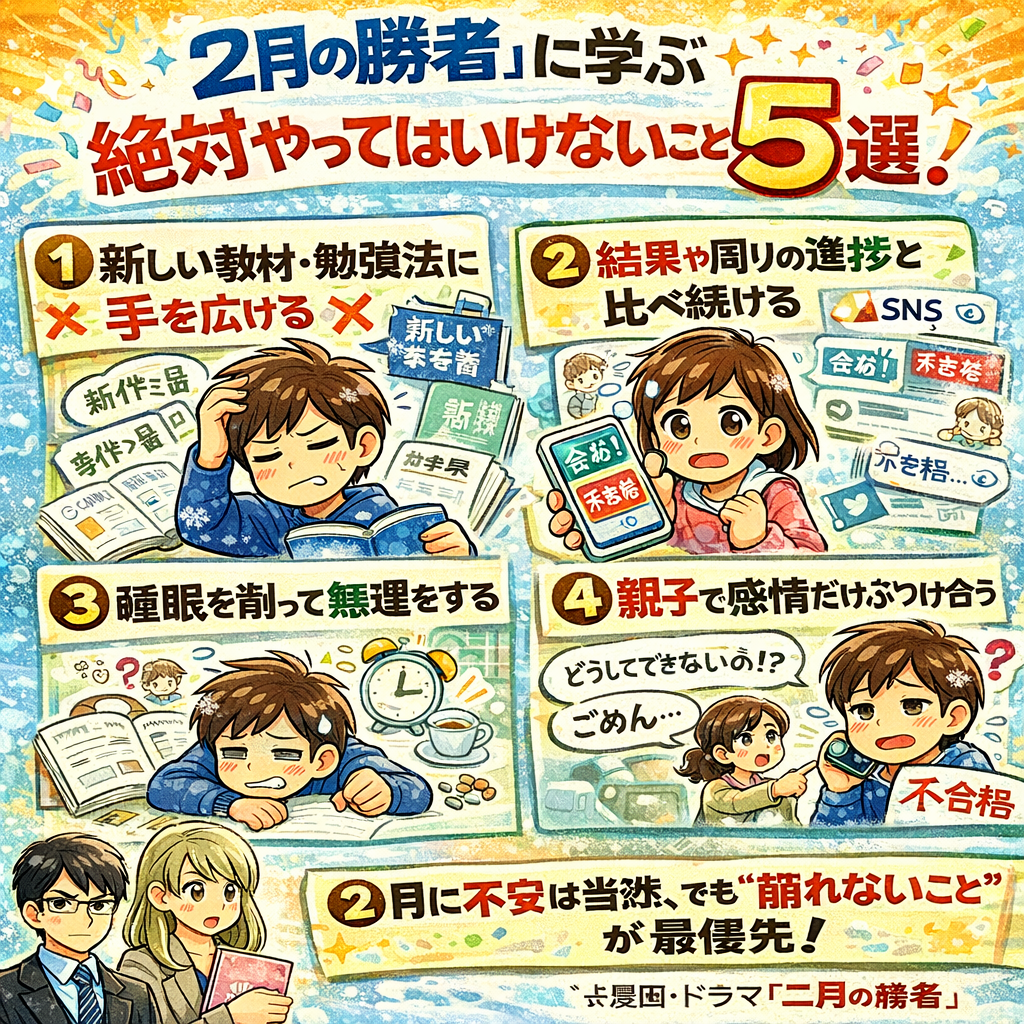今日はそこから学ぶ形で、「2月に絶対やってはいけないこと」5つを、受験全般に使える形にまとめます。
